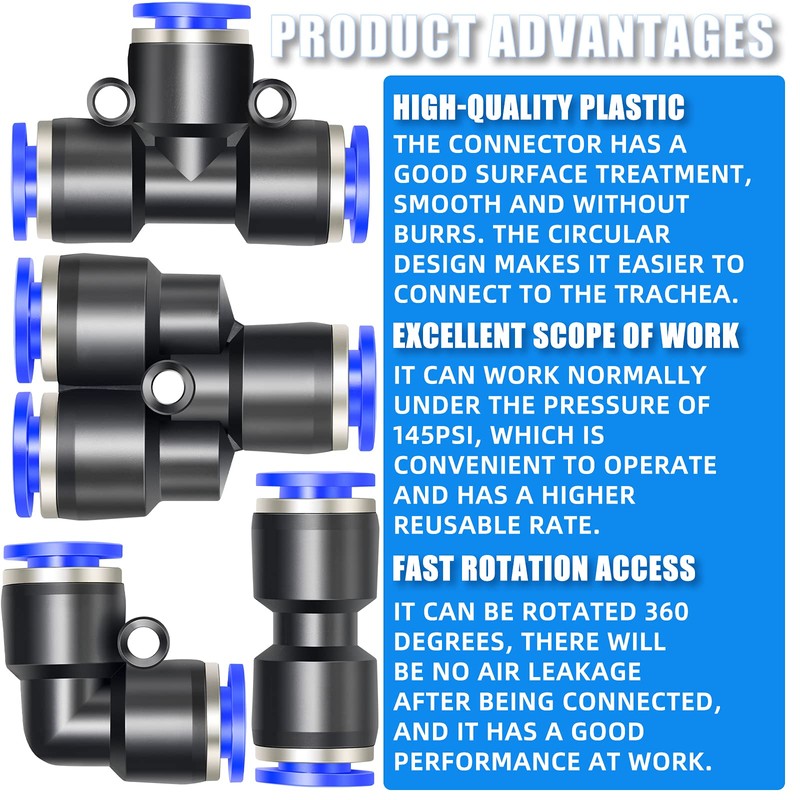• Wide Application: Used in the connection of pipelines and different pneumatic components.