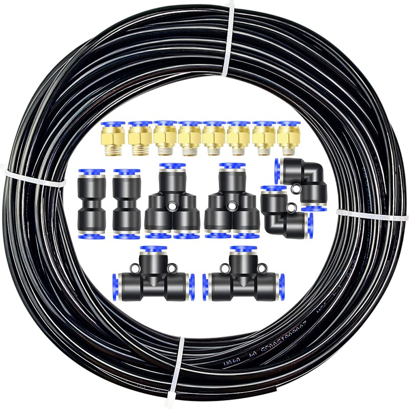 ERGAOBOY Black 10M Polyurethane PU Air Hose Pipe Kit, 8mm OD x 5mm Inner Diameter with 16 Connector Sets
