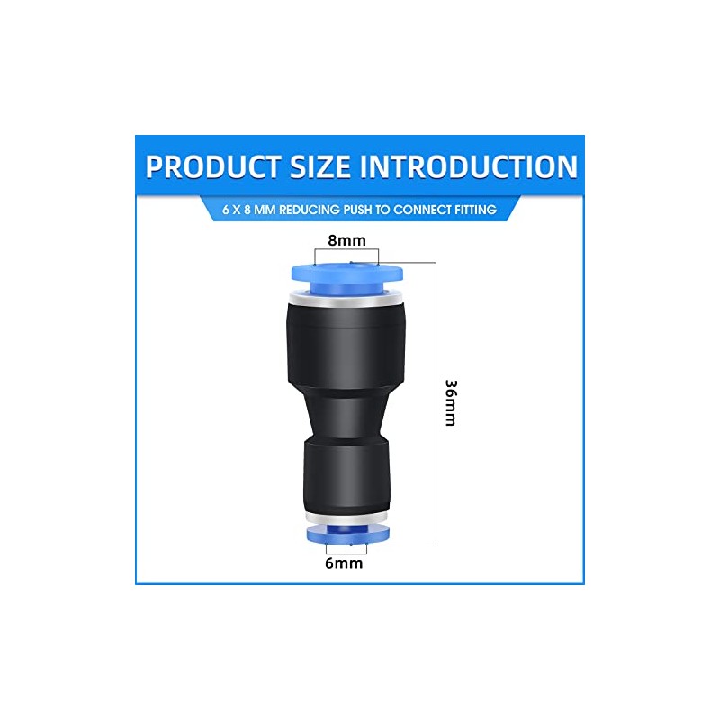- Size: 8mm x 6mm OD pneumatic reducing connectors.