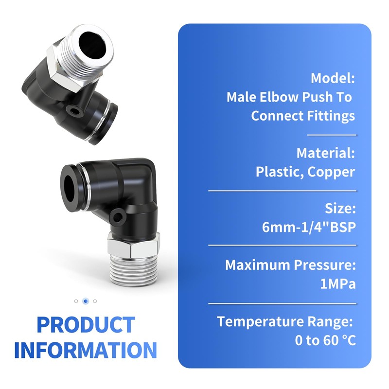 - Size: 6 mm pipe OD x 1/4 BSP thread pneumatic fittings --- BSP thread size is a nominal pipe size, and it does not reflect the actual diameter
