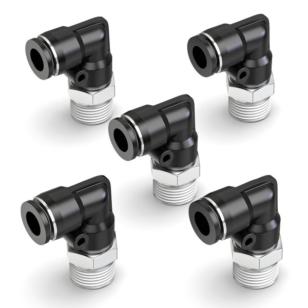 ERGAOBOY Pack of 5 6 mm Pipe OD x 1/4 Inch BSP Thread 90 Degree Male Elbow Push to Connect Fittings, Black Air Fittings Pneumatic Push Quick Release Connector