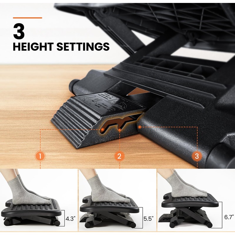 ErGear Under Desk Footrest, Adjustable Foot Rest with 3 Height Settings and 3...