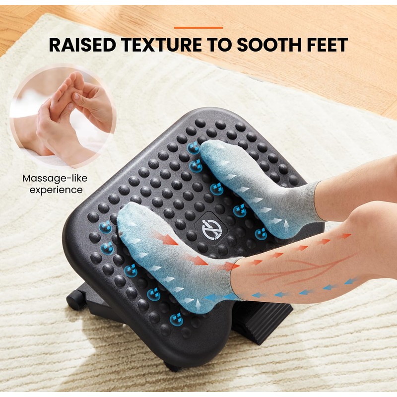 ErGear Under Desk Footrest, Adjustable Foot Rest with 3 Height Settings and 30-Degree Angle, Ergonomic Desk Foot Rest with Massage Texture, Foot and Leg Rest for Home & Office