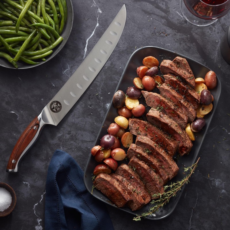 - Guy Fieri’s Knuckle Sandwich custom saber designed meat slicing knife is for all your meat carving and slicing tasks