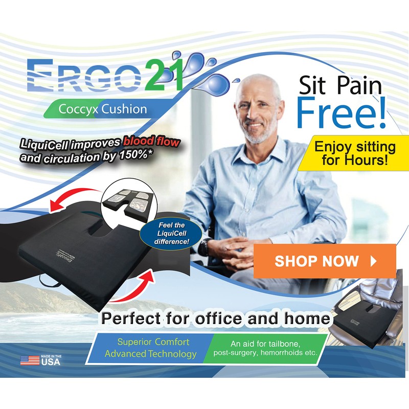 - Versatile and Portable: The Liquicell coccyx donut like pillow is versatile and can be used on various seating surfaces, such as at home, office chair. Its portable design allows you to easily take it with you wherever you go. Can be used on limited basis in the car or wheelchair, thereafter we recommend our Ergo21 Sports cushion or Original cushion for car or wheelchair.