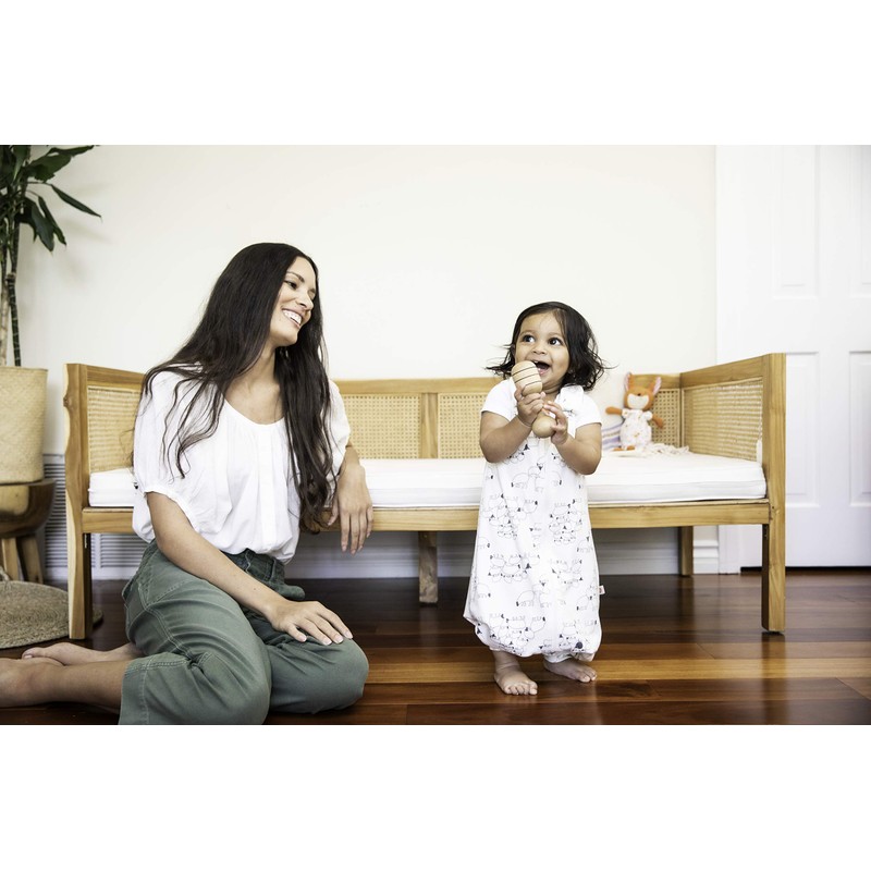 - Baby sleeping bag all year round - 1.0 tog summer sleeping bag and winter sleeping bag in one. On cooler days and nights, the sleeping bag can be easily worn as a jumpsuit over clothing.