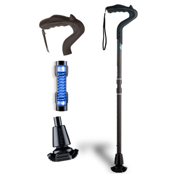 Ergocane 2G by Ergoactives As Seen On TV. Spring-Assisted Shock Absorber Fully-Adjustable Ergonomic Cane, Newly Released, Equipped with Stand Alone High Performance Rubber Tip (Matte Black Design)