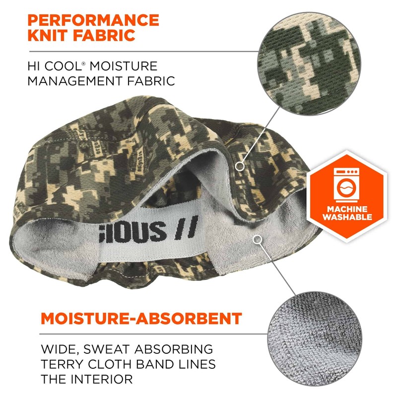 Ergodyne Chill Its 6630 Skull Cap, Lined with Terry Cloth Sweatband, Sweat Wicking, Camo