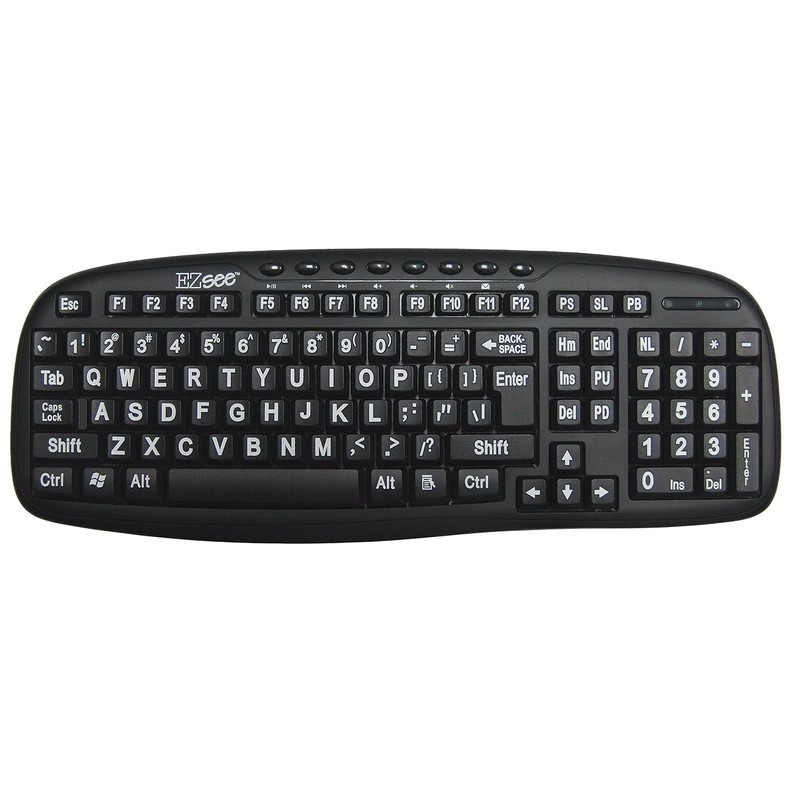Ergoguys Ezsee Low Vision Keyboard Large White Print Black Keys