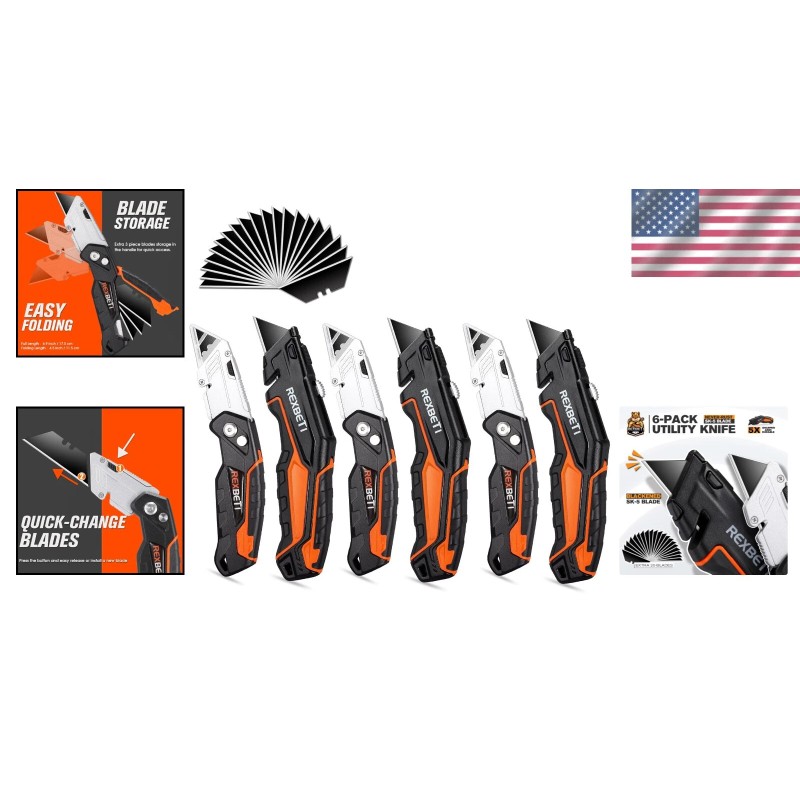 Ergonomic 6-Pack Utility Knives with Extra Blades - Perfect for Any Material