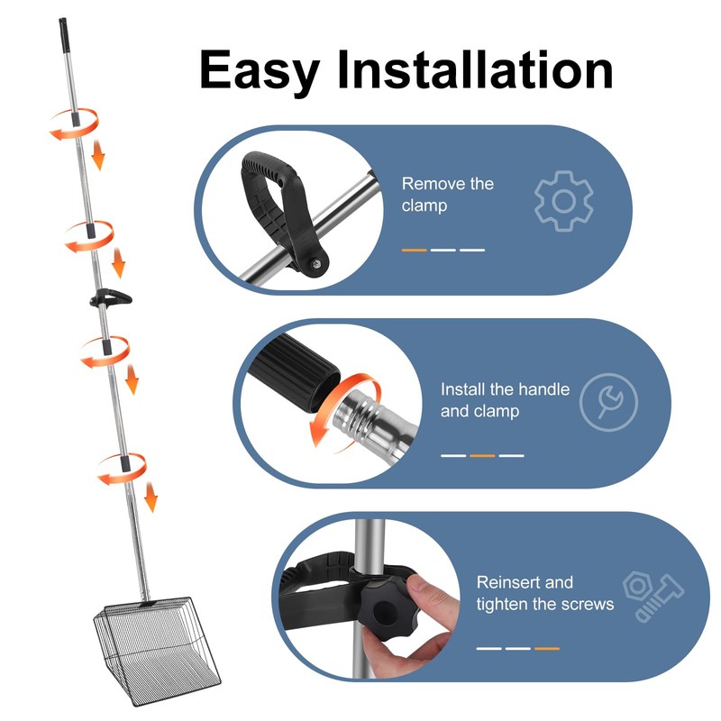 - Effortless Cleanup with Ergonomic Design – Say goodbye to bending and straining your back during cleaning. This chicken poop scooper comes with an extended 76" handle that allows you to comfortably scoop waste without needing to bend over. Perfect for people with back issues or anyone looking to make chicken coop maintenance less physically demanding. Enjoy the convenience of cleaning while standing with no more back pain or fatigue.