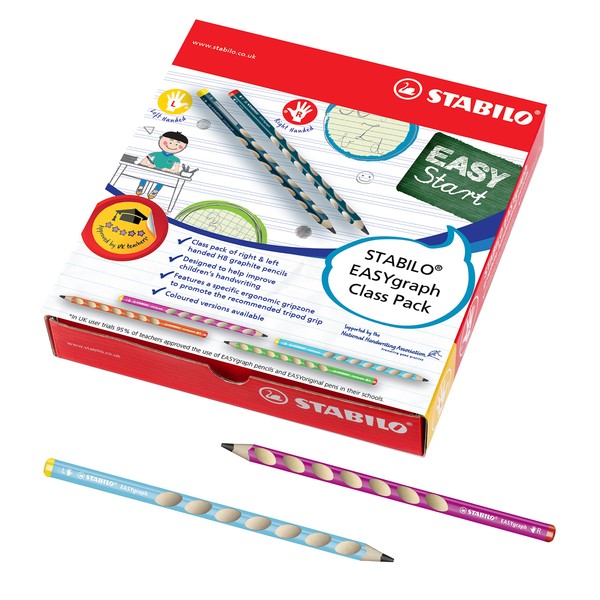 Ergonomic Graphite Pencil - STABILO EASYgraph - 8 x Left-Handed and 40 x Right-Handed - Classpack of 48 - Assorted Colours - HB