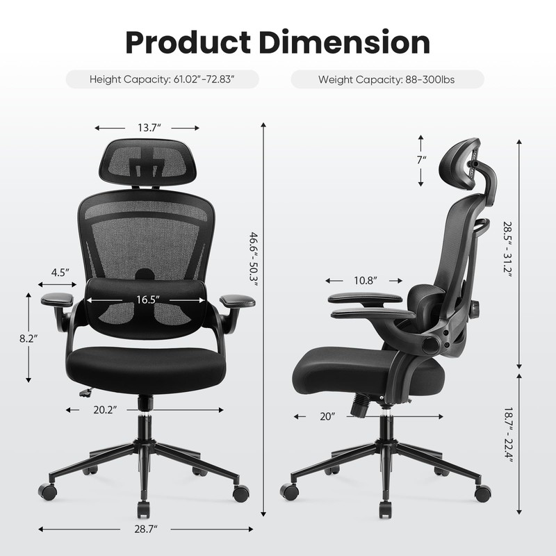 - 【Space-Saving】Flip-up armrests are available and won't be in your way when not in use. The Armrests of the computer chair provide comfortable support for your arms and can be flipped up to save space effectively while not in use.