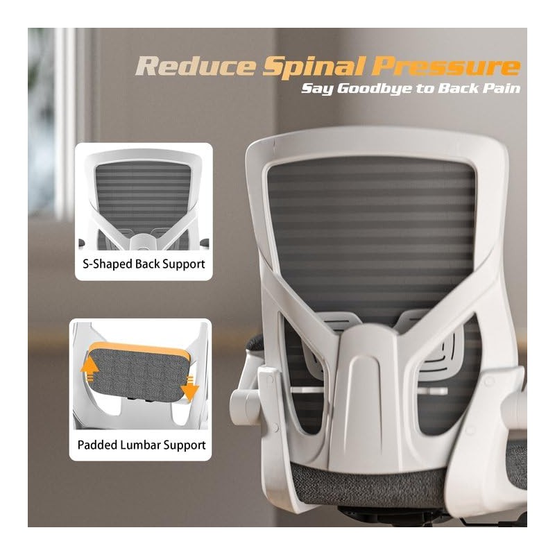 - 【Adjustable Lumbar Support for Healthy Posture】 The breathable S-curve mesh back and customizable lumbar support align your spine, reduce back strain, and improve posture—perfect for long sitting sessions at work or home.