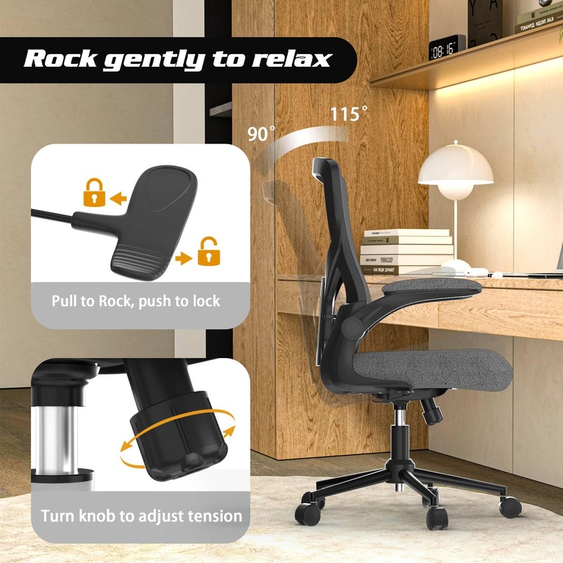 - 【Flip-Up Padded Armrests – Space-Saving & Supportive】 Relieve arm and shoulder fatigue with soft padded armrests. Flip them up to fit under desks or switch sitting positions freely—perfect for small spaces or shared work areas.