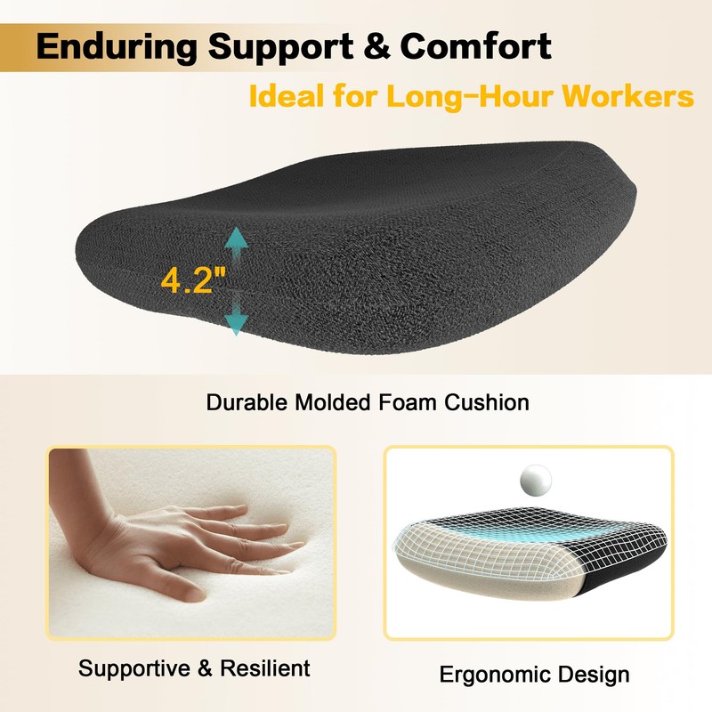- 【Enduring Support & Comfort】The molded foam cushion with a waterfall edge reduces thigh pressure, improves blood circulation, enhances comfort, minimizes fatigue, and promotes healthy sitting, making it perfect for prolonged use