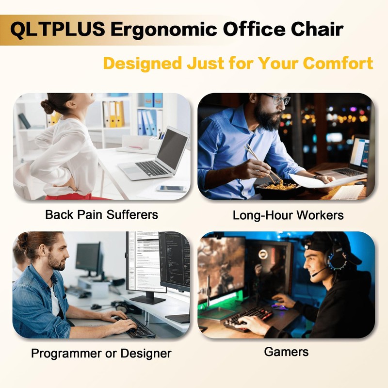 - 【Who is this chair ideal for】This office chair is perfect for office workers, students, and those with posture or back issues. It’s also ideal for creatives, health-conscious individuals, and businesses looking to enhance comfort and productivity