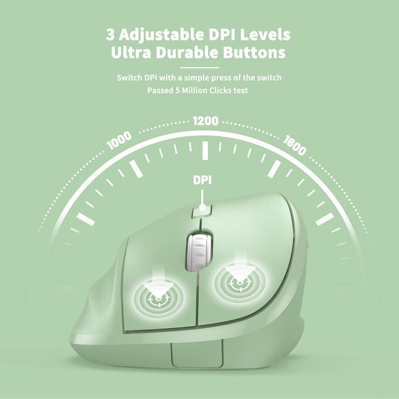 Ergonomic Wireless Mouse 2024 New, Updated Smaller Ergo Mouse with USB Receiver for PC Computer, Laptop and Desktop, Vertical Mouse with Silent Clicks Long Battery Life Up to 1600 DPI, Green