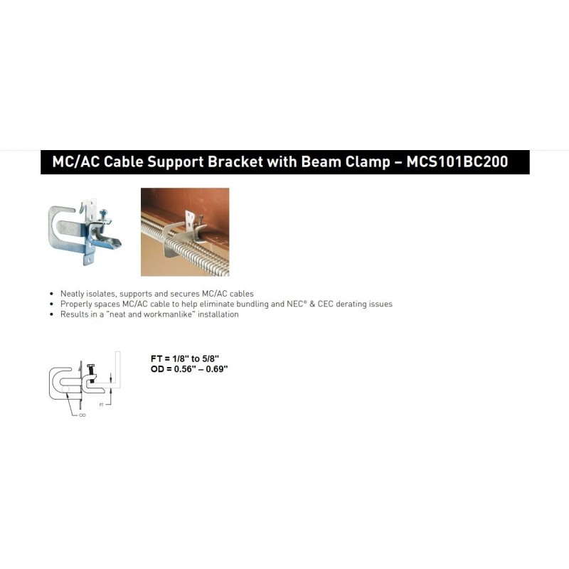 MC/AC Cable Support Bracket with Beam Clamp, 10-3 to 8-3 MC/AC, 7 Capacity, 1/8"–5/8" Flange