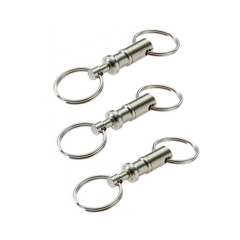 Ericotry Detachable Pull Apart Silver Key Rings Keychains-Heavy Duty Dual Key Ring Pull Apart Snap Lock Holder with Split Rings (3 Pack)