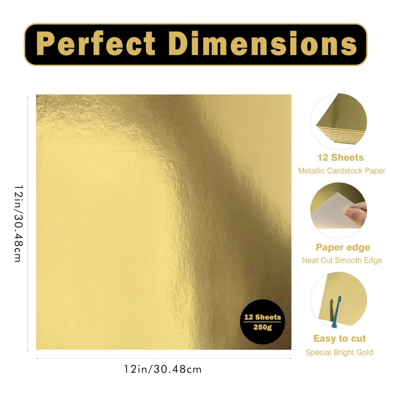 【Quality Material】12 x 12 inch gold metallic cardstock are made of premium 250g cardstock, which makes them bright, thick, solid, durable, and ultra fade-resistant and deformation-resistant.