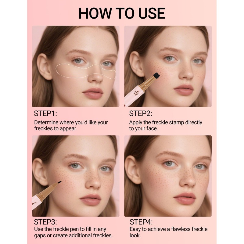 - 【Innovative 2-in-1 Freckle Makeup Kit】Our dual-ended freckle pen & stamp is the perfect tool for creating realistic, natural-looking freckles. The fine, ultra-precise tip makes it easy to draw small, lifelike freckles, while the freckle stamp creates a fuller, more defined look for a 3D freckle effect. Achieve flawless and symmetrical makeup effortlessly with up to 24-hour wear