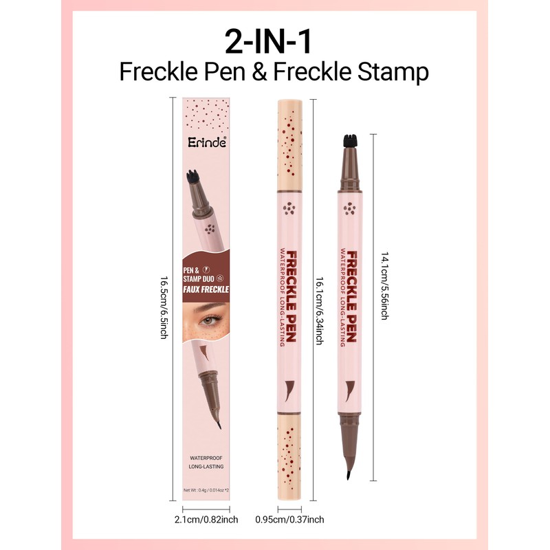 Erinde 2-In-1 Dual-Ended Freckle Pen & Freckle Stamp, Waterproof Freckles Makeup Kit with Precise Curved Tip for Natural, Lifelike Faux Freckles, Long-Lasting Quick Dry Smudge-Proof Fake Freck Pen, 02