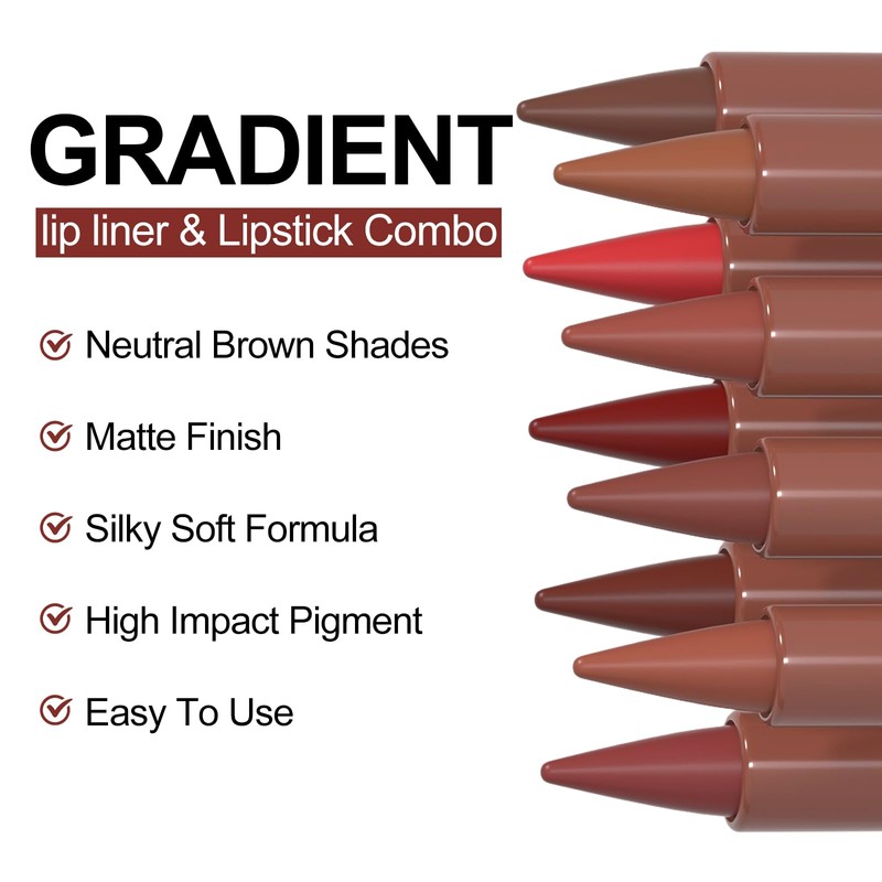 Erinde 2-in-1 Lip Liner and Lipstick Lip Combo Set, Matte Nude Dark Brown Red Lip Liners Creamy Lip Pencil, High Pigmented Long Lasting Waterproof Smudge Proof Lip Liner Lipstick Crayon Makeup, 05#