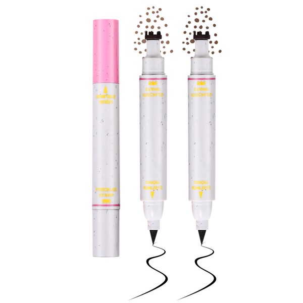 Erinde 2pc Natural Freckle Eyeliner Pen, 2 in 1 Liquid Freckle Stamp & Smudge-Proof Liquid Eyeliner, Long Lasting Waterproof Freckles Tattoo Marker, High Pigment Eye liners 2#+3#