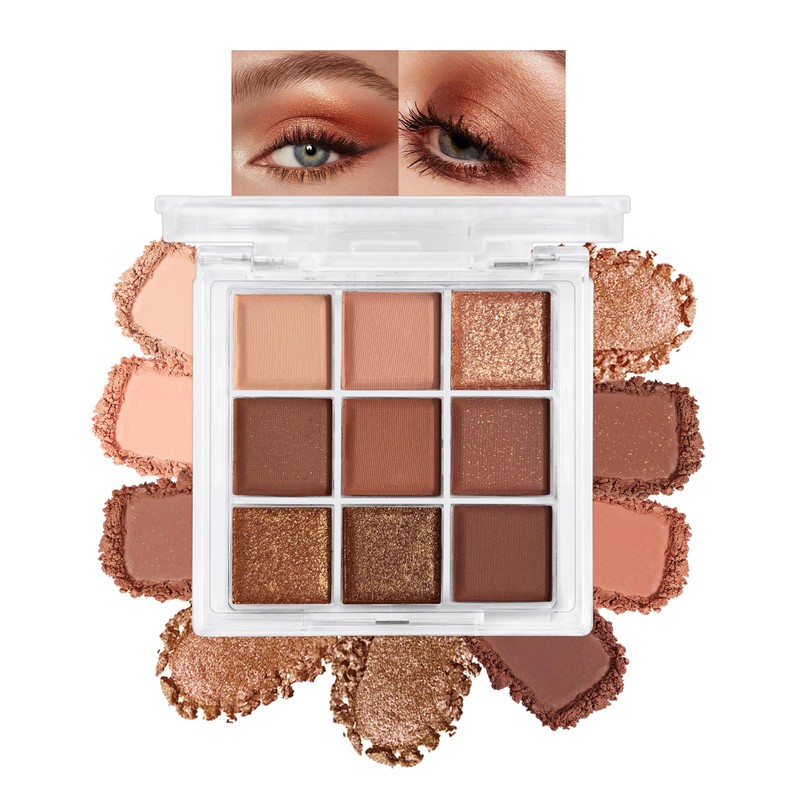 Erinde Paleta de sombras de ojos de 9 colores, con sombras mate y perladas, de alta pigmentación, duraderas y resistentes al agua, ideales para un maquillaje natural y neutro.