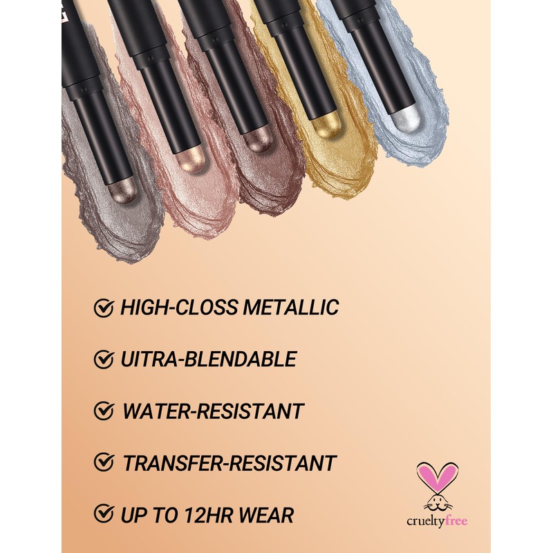 - 【CRUELTY-FREE & VEGAN FORMULA】From soft champagne to radiant gold eyeshadow tones, this collection complements all skin tones. A stunning addition to any nude or metallic eye shadow stick set