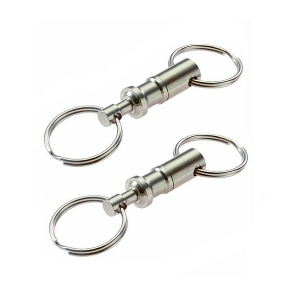 erioctry 2 Pcs Heavy Duty Dual Key Ring Detachable Pull Apart Snap Lock Holder Keychains, Silver