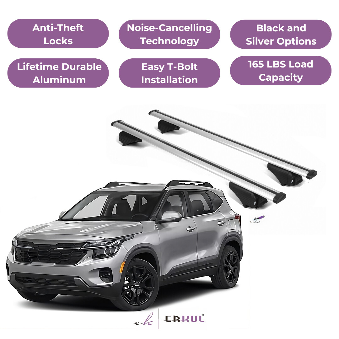 ERKUL Roof Rack Cross Bars for 2021-2025 Kia Seltos X-Line ' Aluminum Crossbars with Anti-Theft Lock for Rooftop ' Compatible with Raised Rails - Silver