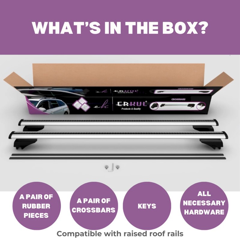 ERKUL Roof Rack Cross Bars for KIA Seltos 2021-2025 for Raised Rails - Silver