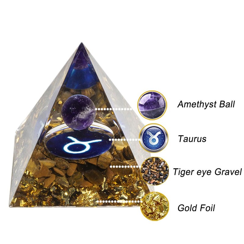 Erliway 12 Zodiac Orgone Crystal Pyramid, Natural Amethyst Crystal Ball for Taurus Zodiac, 2" Orgone Healing Pyramid for Positive Energy Stress Reduce Healing Meditation Attract Wealth Lucky