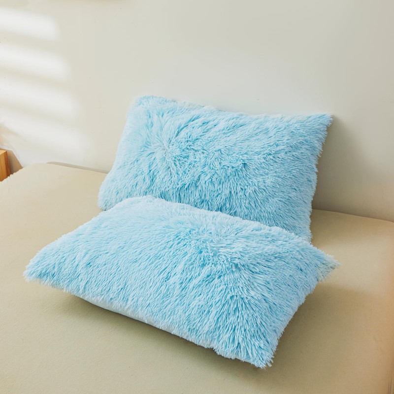 - HIDDEN ZIPPER CLOSURE &4 CORNER TIES : The blue fluffy comforter cover set with hidden zipper which is sturdy and durable,does not hurt the skin, allows you to insert and remove your duvet when you need,reduce your precious time on bed making process.4 corner ties inside the duvet cover, which are used to fix the comforter and the duvet cover to ensure the correct position, avoid the comforter or the duvet cover slipping. Make you enjoy a high quality night's sleep.