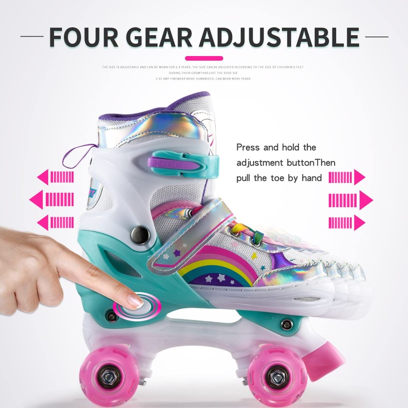 • 【ADJUSTABLE SKATES】ERNAN rollerskates One button to adjust different sizes, ensuring years of fun. Don't worry about your kid's feet growing up anymore.Check our size chart in the product image, make sure you chose the right pair!