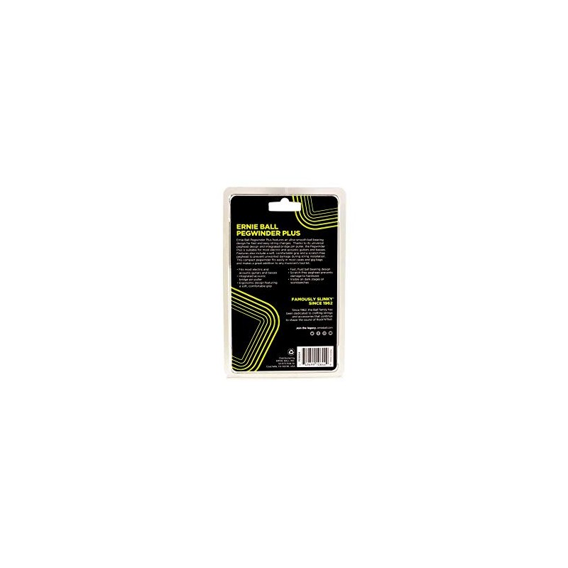 Product DescriptionErnie Ball Pegwinder Plus guitar string winder features an ultra-smooth ball bearing design for fast and easy string changes. Thanks to its universal peghead design and integrated bridge pin puller, the Pegwinder Plus is suitable for most electric and acoustic guitars and basses. Features also include a soft, comfortable grip and a scratch-free peghead to prevent unwanted damage during string installation. This compact pegwinder fits easily in most cases and gig bags and makes a great addition to any musician's tool kit.From the ManufacturerErnie Ball Pegwinder Plus features an ultra-smooth ball bearing design for fast and easy string changes. Thanks to its universal peghead design and integrated bridge pin puller, the Pegwinder Plus is suitable for most electric and acoustic guitars and basses. Features also include a soft, comfortable grip and a scratch-free peghead to prevent unwanted damage during string installation. This compact pegwinder fits easily in most cases and gig bags and makes a great addition to any musician's tool kit.