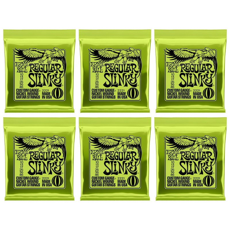 Ernie Ball Regular Slinky Nickel Wound Electric Guitar Strings 6 Pack - 10-46 Gauge