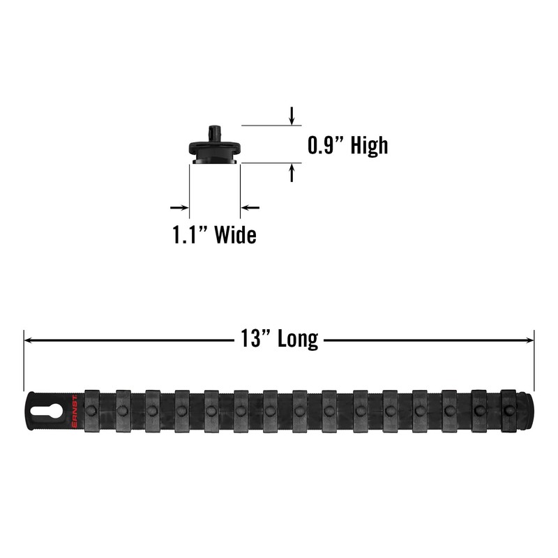 Ernst Manufacturing 13-Inch Socket Organizer with 15 1/4-Inch Twist Lock Clips, Black