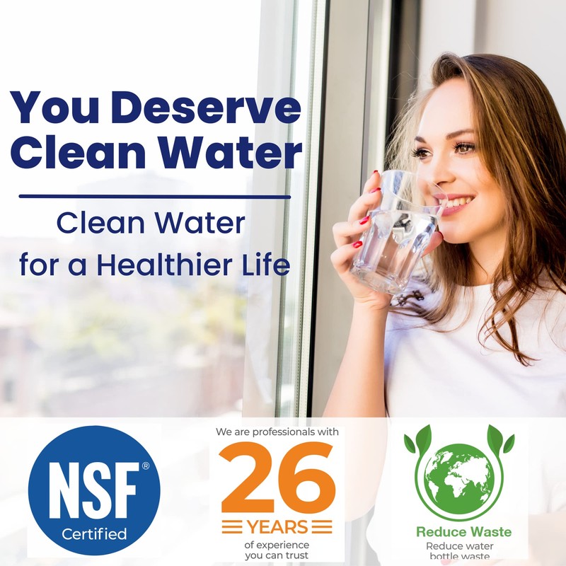 - Certificado NSF: el juego de reemplazo de filtros de agua de ósmosis inversa elimina eficientemente miles de contaminantes dañinos del agua del grifo como PFAS, cloro, fluoruro, plomo, arsénico, malos sabores/olores y otros metales pesados y productos químicos.