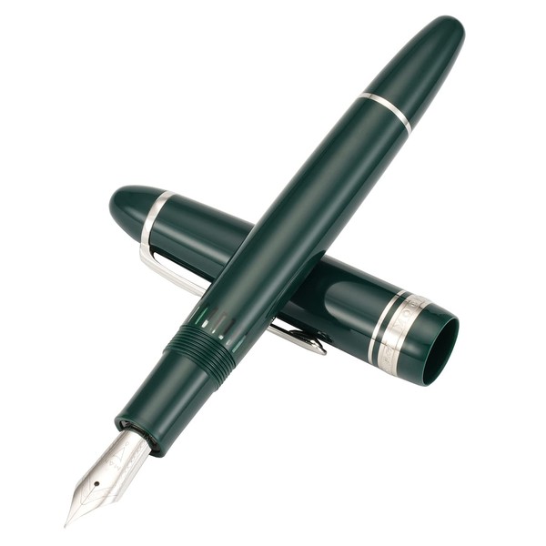 erofa Majohn P136 Piston Fountain Pen Medium Nib with Box, Green Resin Writing Pen Gift Set