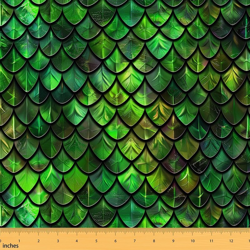 Erosebridal Green Scales Fabric by The Yard,Ocean Nautical Mermaid Scales Upholstery Fabric for Quilting Sewing,Fish Scales Sealife Decorative Fabric,3D Marine Squama Indoor Outdoor Fabric,3 Yards