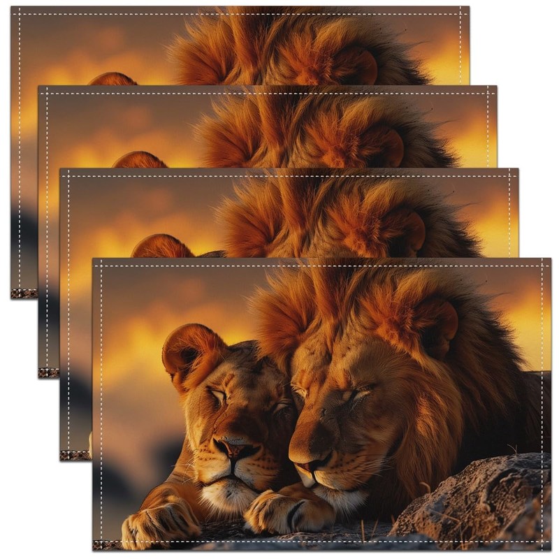 Erosebridal Lion Table Mats,3D Lion Placemats,African Safair Animal Place Mats,Nature Theme Design Waterproof Placemats Set of 4 12x18 for Kids Teens Adult,Scratch Proof Decoration Indoor Outdoor