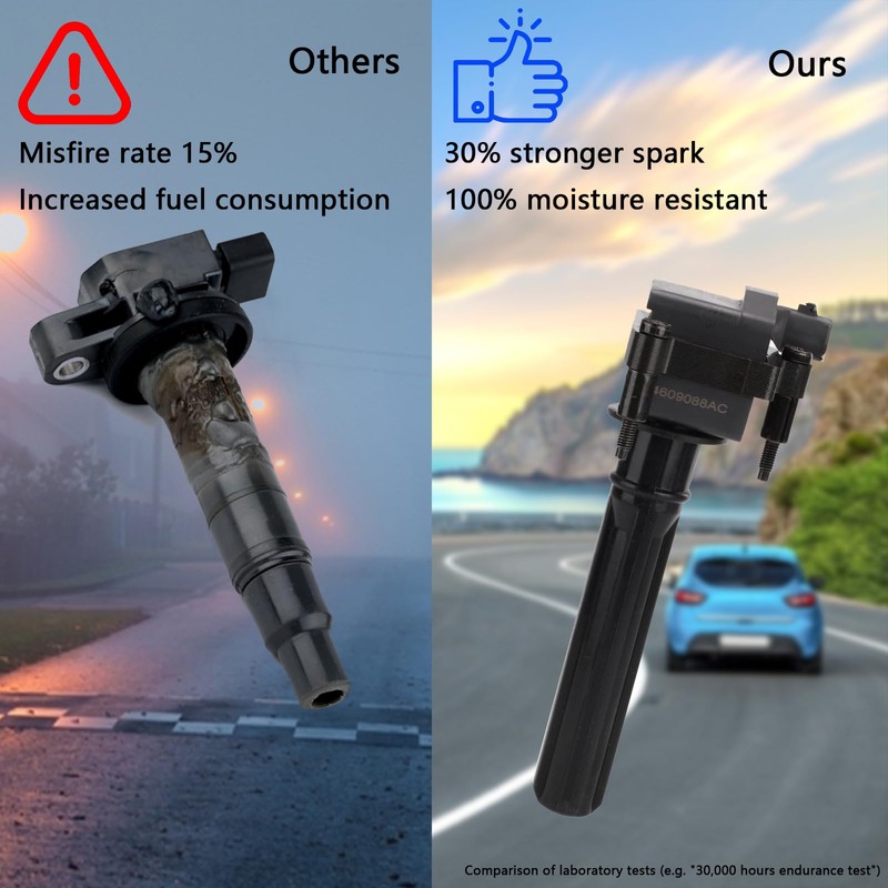 - Resolves common ignition system issues: Our ignition Coils effectively address common problems such as backfiring, misfires, stalling, engine jerking, and poor idling. They also enhance power output to optimize overall engine performance. Additionally, these coils monitor check engine lights for circuit malfunctions and severe stalling.