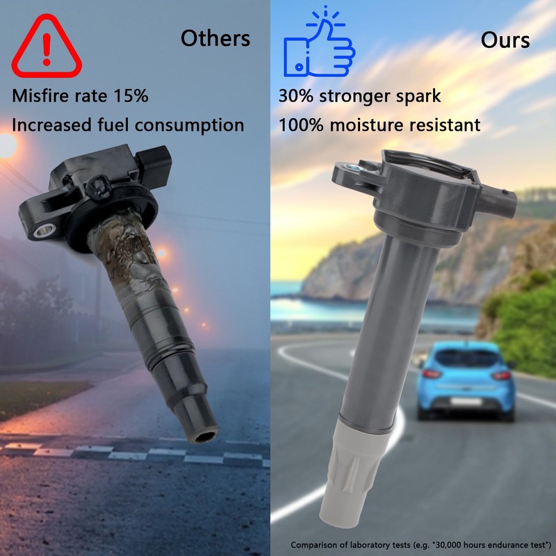 - Resolves common ignition system issues: Our ignition Coils effectively address common problems such as backfiring, misfires, stalling, engine jerking, and poor idling. They also enhance power output to optimize overall engine performance. Additionally, these coils monitor check engine lights for circuit malfunctions and severe stalling.