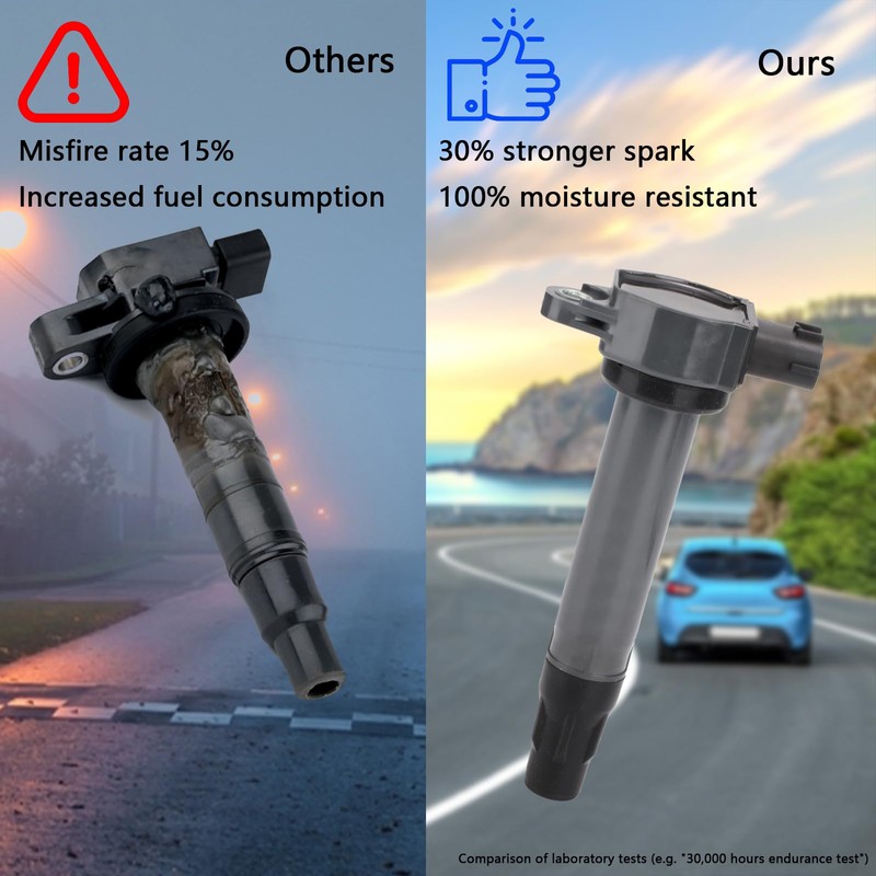- Resolves common ignition system issues: Our ignition Coils effectively address common problems such as backfiring, misfires, stalling, engine jerking, and poor idling. They also enhance power output to optimize overall engine performance. Additionally, these coils monitor check engine lights for circuit malfunctions and severe stalling.