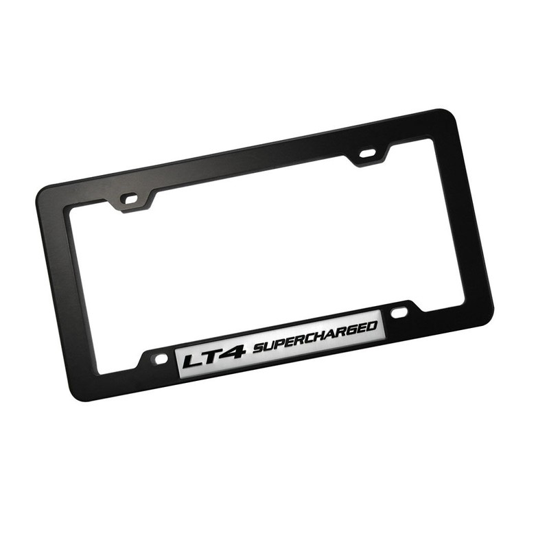 ERPART Black License Plate Tag Frame with LT4 Supercharged Black on Silver Highly Polished Real Aluminum Emblem