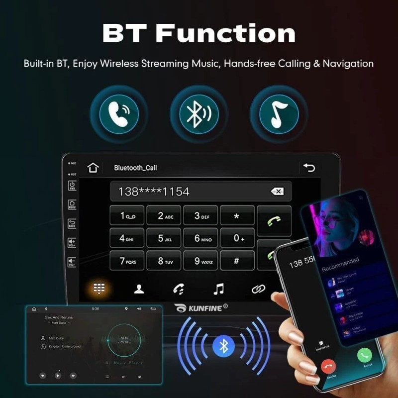 ●Built-in Bluetooth with A2DP/Hands Free/Phone book:Bluetooth hands-free calls,Bluetooth music player,Auto loading phonebooks