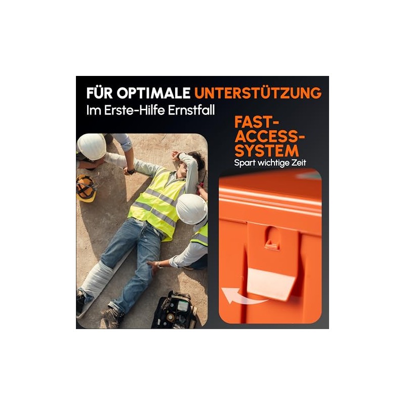 - EINFACHE MONTAGE UND ZUGRIFF - Dank der mitgelieferten Wandhalterung und der 90° Arretierung ist unser Notfallkoffer leicht zu montieren und der Inhalt schnell zugänglich. So ist er stets gut sichtbar und einsatzbereit.